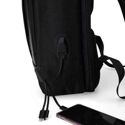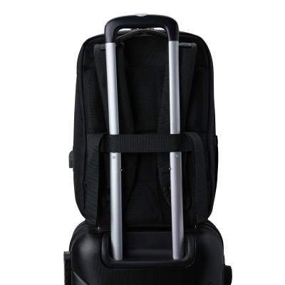 Mochilas Mochila confeccionada em Nylon 22 litros com detalhes em couro sintético. Contém 5 compartimentos, sendo um bolso com faixa refletiva, divisórias internas para acessórios, bolso para tablet e notebook 15.6, bolso antifurto nas costas, bolso externo na lateral com elástico, suporte externo USB, alça para encaixe em malas de viagem, alças da mochila possuem bolsos integrados para suporte de óculos e cartões. 42,0 cm x 28,0 cm x 20,0 cm 983 g