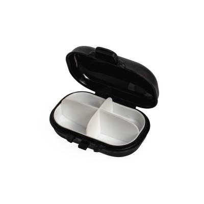 Porta Comprimido Um porta-comprimido feito em plástico, com design compacto e compartimento removível com quatro divisórias, o que facilita a limpeza e oferece mais opções para organizar medicamentos ou pequenos objetos. 9,6 cm x 3,7 cm x 6,5 cm 36 g