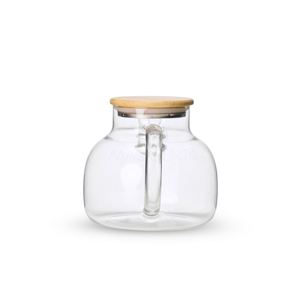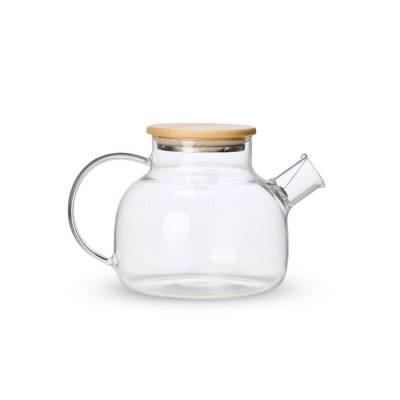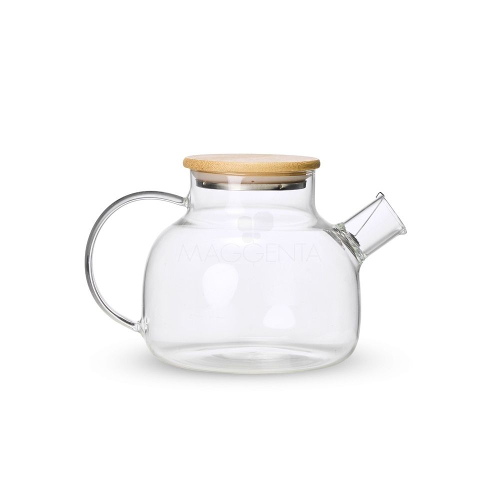 Kit Gastronomia Uma chaleira em estilo clássico e refinado, com capacidade máxima de 1 litro, para deixar a hora do chá mais agradável. Feita em vidro borossilicato, material conhecido por sua resistência e durabilidade, esta chaleira pode ser levada a fogo baixo, suporta variações de temperatura sem danificar, é fácil de limpar e não absorve odores, sabores ou manchas, mantendo a integridade do gosto e aroma de cada infusão. Ela possui tampa em bambu com vedação em silicone para conservar a temperatura quente dos líquidos por mais tempo. Acompanha filtro para bico em alumínio. 20,3 cm x 13,5 cm 298 g