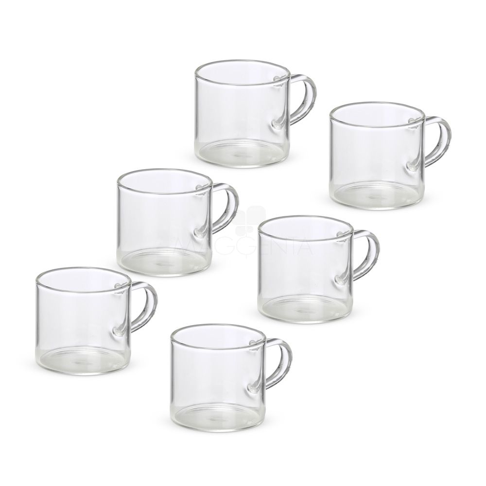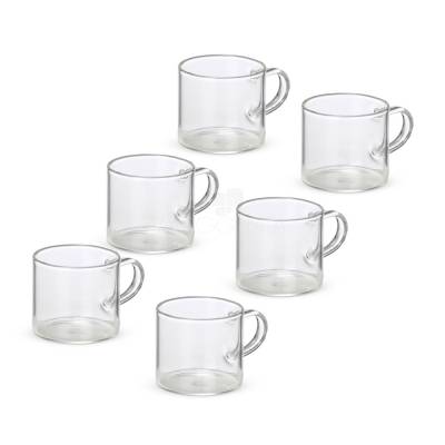 Caneca de Vidro Um kit com seis xícaras em estilo clássico para servir uma bebida quente de um jeito especial. Com capacidade máxima de 100ml, cada uma delas é feita em vidro borossilicato, matéria-prima conhecida por sua durabilidade e resistência, o que as transformam em opções excelentes para tomar aquela dose de café ou chá a qualquer hora do dia. 7,5 cm x 5,0 cm 313 g