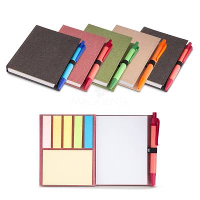 Bloco para Anotações Bloco de anotações ecológico personalizado com capa em papel kraft. Possui 1 bloco para anotações com aproximadamente 100 folhas brancas, 25 folhas adesivas amarelas, 5 marcadores de páginas coloridos com 25 unidades de cada cor e porta caneta lateral. Ótima opção para divulgação de sua empresa utilizando o logotipo gravado no produto para distribuição em eventos promocionais, brindes corporativos e campanhas de marketing. 11,4 cm x 13,5 cm x 1,7 cm 151 g
