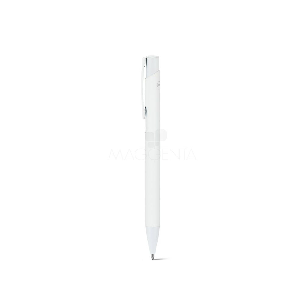 Esferográfica em alumínio 100% reciclado, com acabamento em borracha. Escrita em azul até 1,5 km.