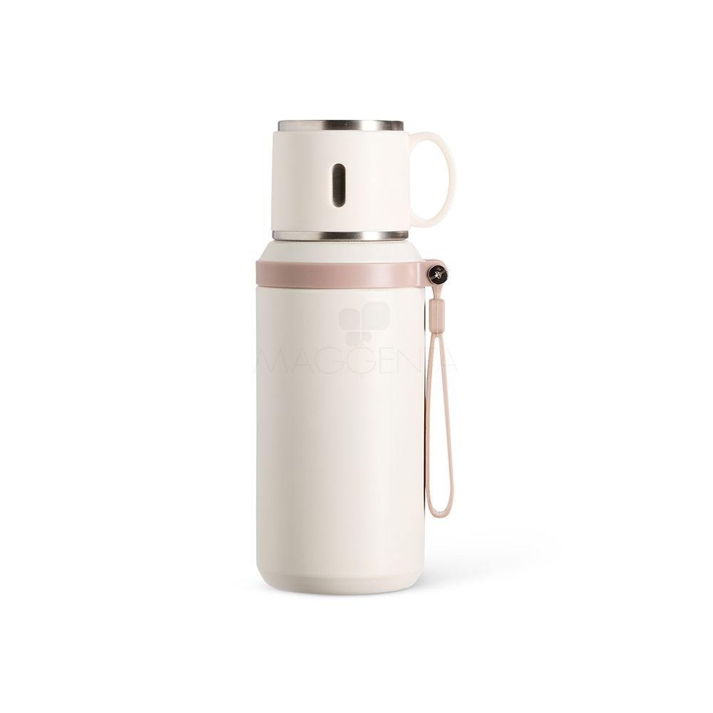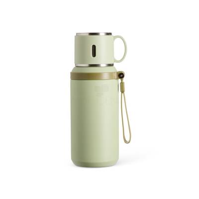 Garrafa Garrafa térmica em inox com pintura eletrostática e capacidade de até 600ml. Possui estrutura de parede dupla e tampa interna rosqueável com anel de vedação, abertura do bocal por botão de acionamento e infusor. Conta ainda com tampa externa em formato de caneca e alça emborrachada para transporte. 9,3 cm x 22,2 cm 382 g