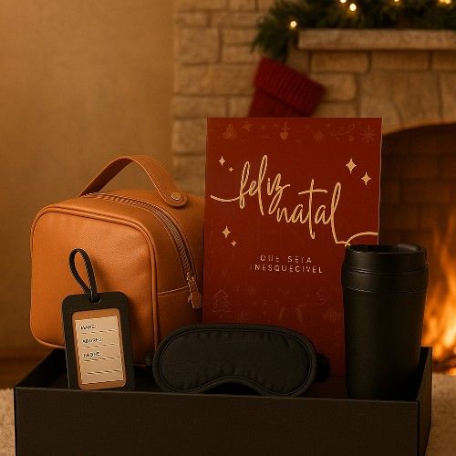 Que 2026 leve sua marca para novos destinos. Composto por: 1 Nécessaire 1 Tag de mala 1 Copo de viagem 1 Máscara de dormir 1 Cartão 1 Caixa de presente