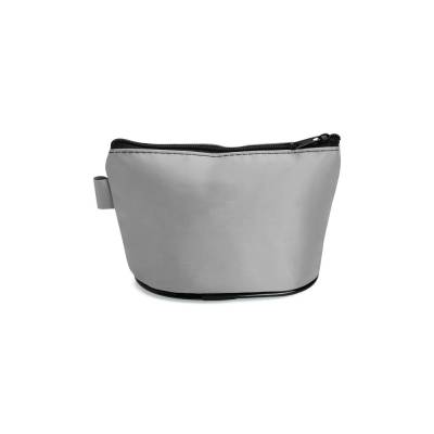 Nécessaire confeccionado em nylon impermeável, fechamento em zíper e alça pequena para acesso de chaveiro ou gancho.