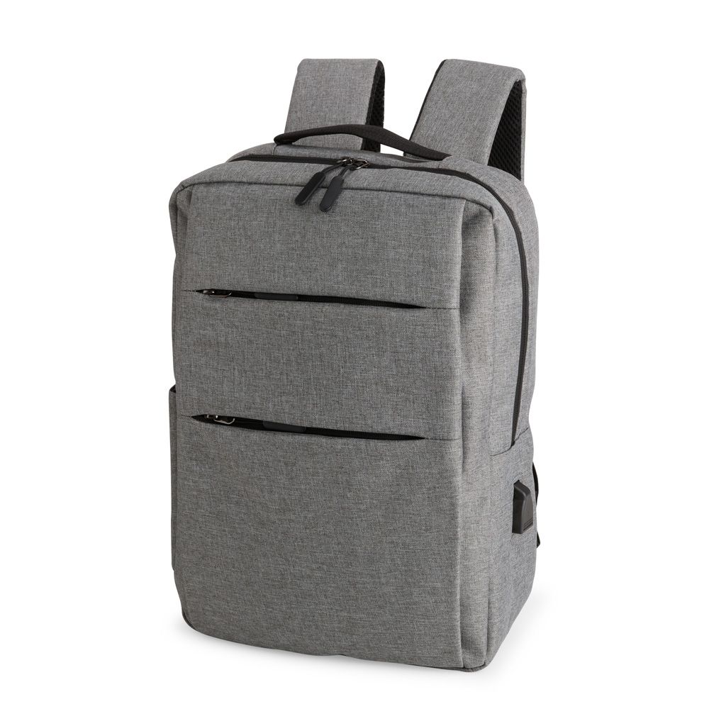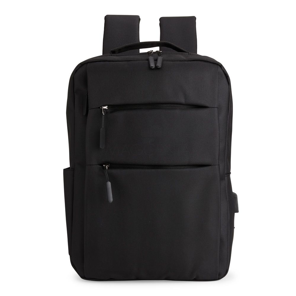 Mochila confeccionada em nylon Oxford impermeável, com fechamento em zíper, puxadores com detalhes em nylon e plástico e capacidade de até 14 litros. Possui compartimento interno principal com bolsos de tamanhos variados e divisória para notebooks de ate 15,6 polegadas. Possui três compartimentos externos, um deles com abertura lateral. Dispõe também de bolso lateral, porta USB, alça de mão em poliéster 210D e alças para as costas em tecido respirável.