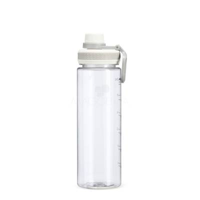 Garrafa plástica com capacidade máxima de 750ml e marcação impressa de volume de até 700ml. Possui tampa rosqueável com protetor para o bocal e alça para transporte.