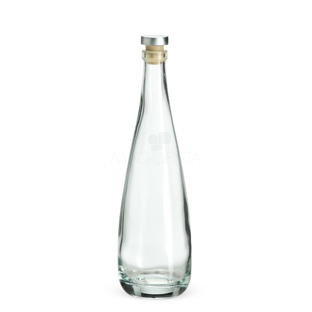 Garrafa de vidro com tampa rolha em material sintético e capacidade máxima de até 550ml.