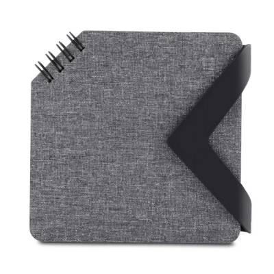 Mini caderno com capa em RPET e fecho magnético em PU, miolo bege composto por 70 folhas pautadas em papel 100g/m².