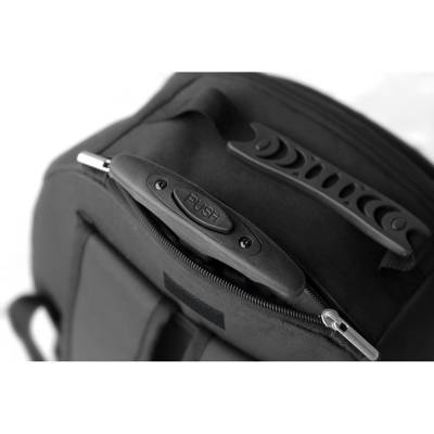 Mochilas Mochila trolley para notebook em 1680D e 300D com 2 rodas. Possui um compartimento principal almofadado para notebook ate 15'6'', compartimento forrado e diversos bolsos. Bolso frontal com ziper e bolsos laterais em tela mesh. O trolley tem protetor de rodas, alcas almofadadas e pega extensivel em metal com mola (altura da pega estendida ate 530 mm). Placa metalica removivel com ima para facil gravacao. Capacidade ate 24 L e peso de 1.65 kg. 350 x 460 x 155 mm | Placa: 50 x 20 mm 46,0 cm x 35,0 cm x 15,0 cm 1 g