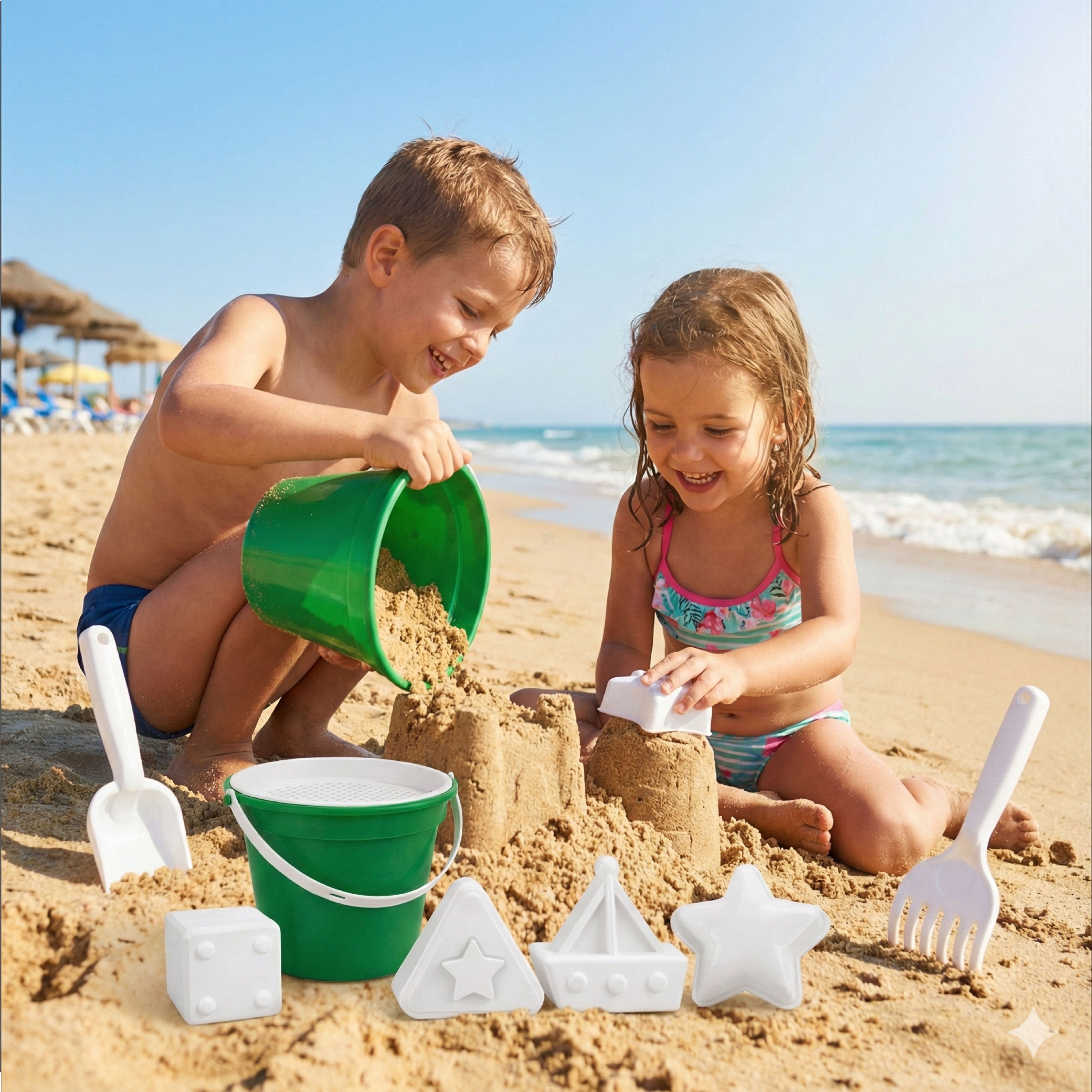 O Baldinho de Praia com Peneira, Pá, Rastelo e 2 Formas é o companheiro ideal para tornar qualquer passeio ao ar livre ainda mais divertido. Com tamanho prático e peso leve, ele foi pensado para proporcionar brincadeiras criativas na areia e na água, incentivando o aprendizado, a coordenação motora e a imaginação das crianças. Seja na praia, no parque ou na piscina, esse kit garante momentos lúdicos e especiais.