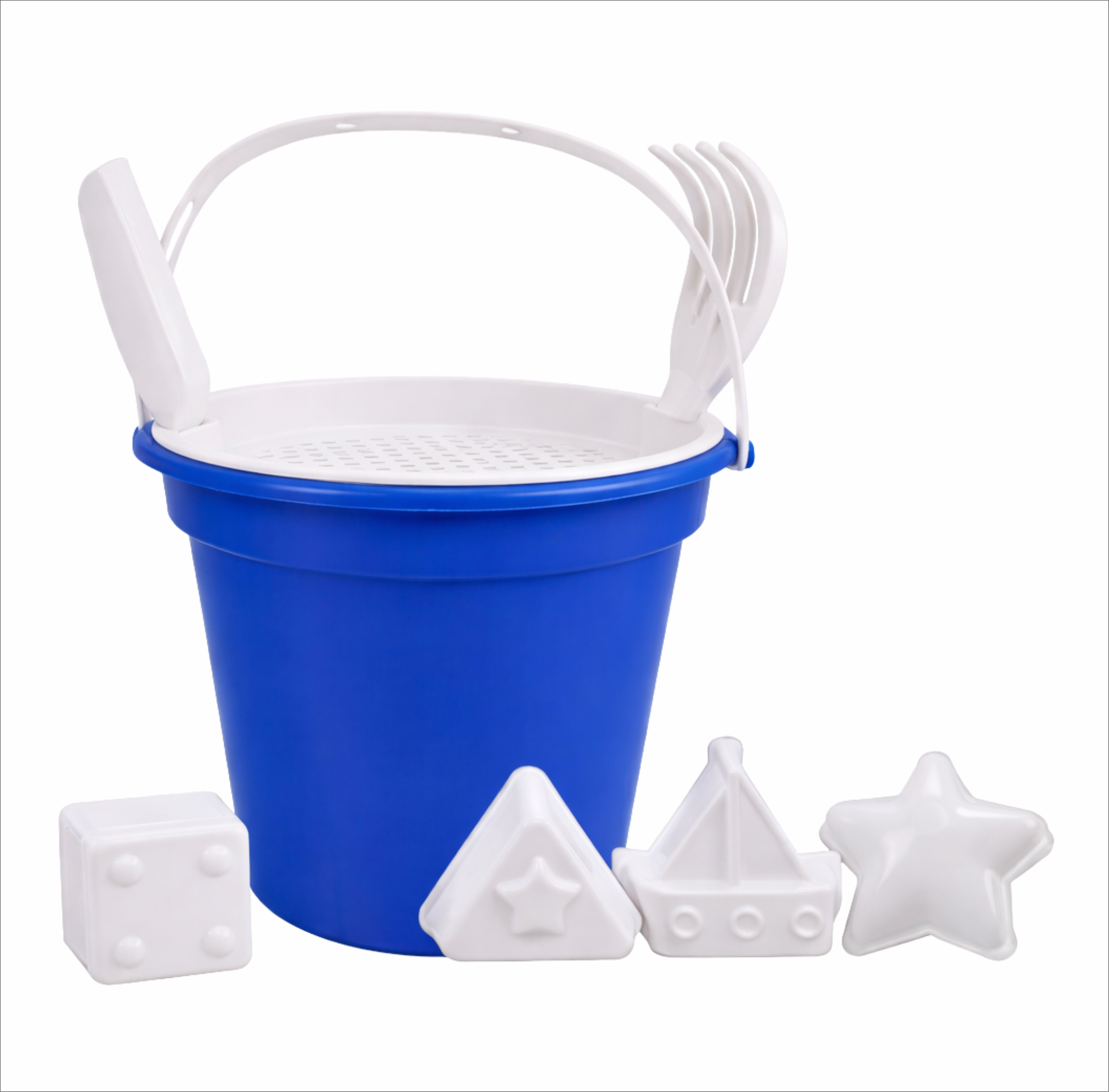 Baldinho de Praia com Peneira, Pá e Rastelo e 2 Formas