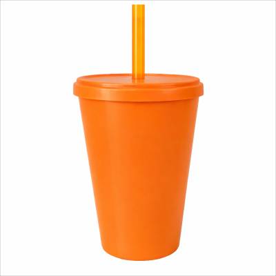 Copo Plástico com Tampa e Canudo 350ml