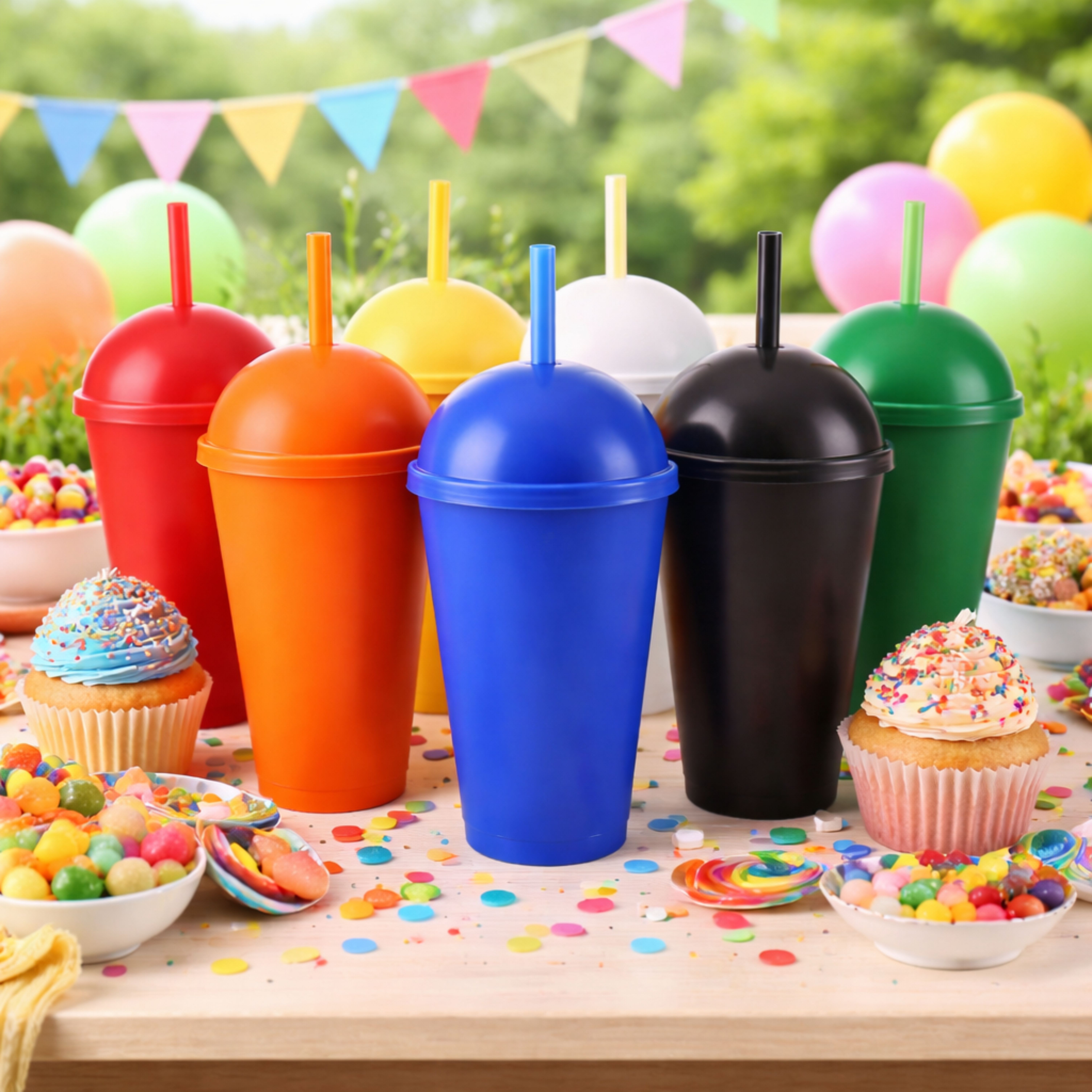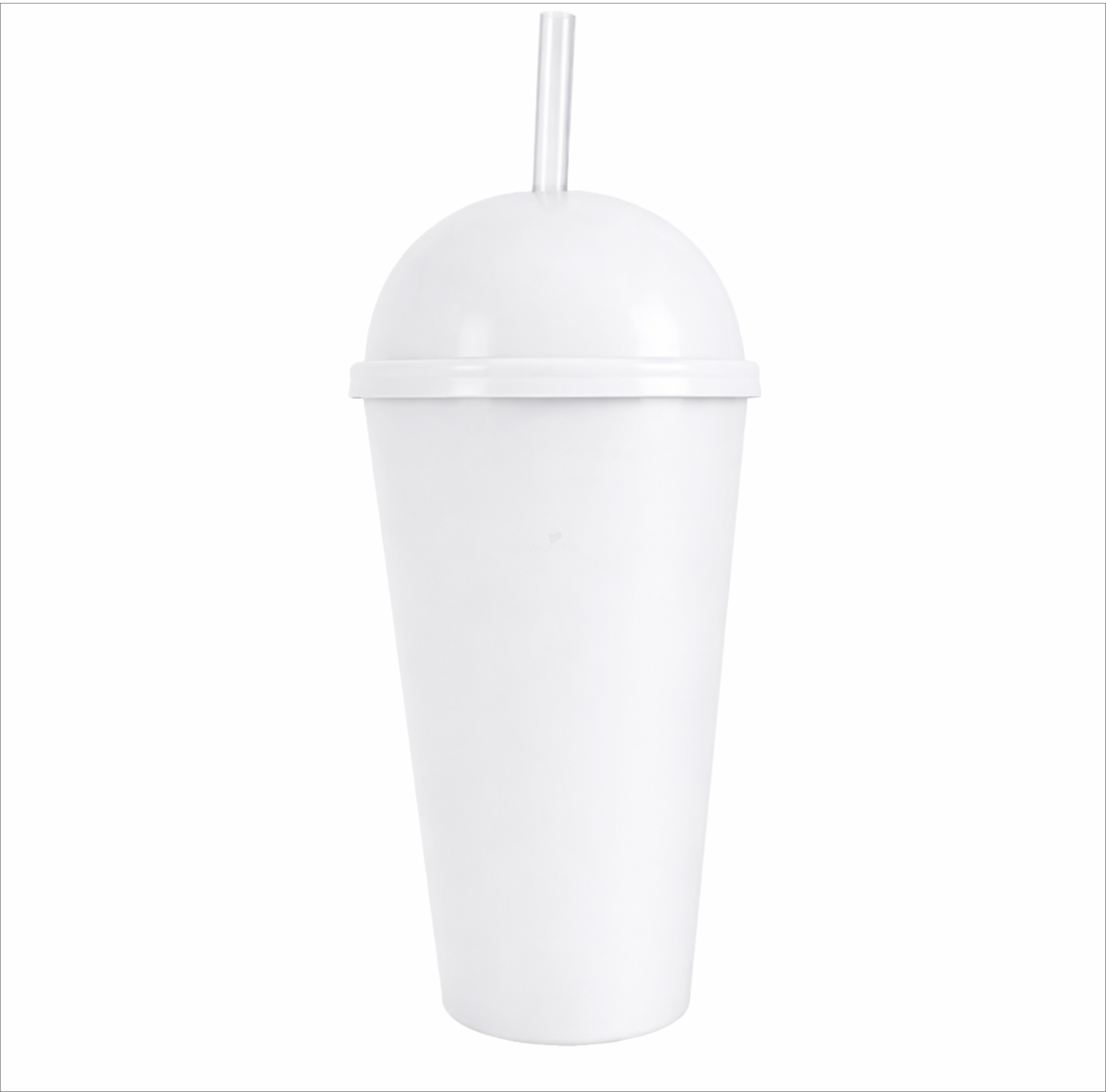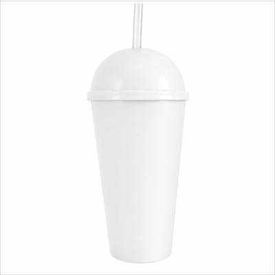 Copo Plástico com Tampa Bola e Canudo 450ml