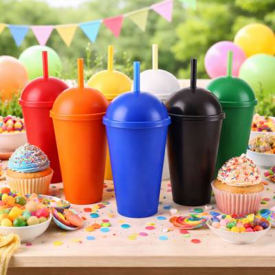 Copo 450ml personalizado com tampa bola e canudo, desenvolvido em polipropileno durável, ideal para eventos corporativos, campanhas promocionais e ações sazonais. Seu design atrativo chama atenção e proporciona praticidade no consumo de bebidas, evitando vazamentos. Com personalização em silk screen ou transfer, é um brinde corporativo moderno que une funcionalidade e alto impacto visual para fortalecer a presença da sua marca.