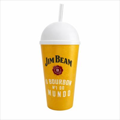 Copo Plástico In Mold Label com Tampa Bola e Canudo 450ml