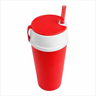 Copo 450ml personalizado com tampa porta snacks, desenvolvido em polipropileno durável, ideal para eventos corporativos, campanhas promocionais e ações sazonais. Seu design inovador com espaço para snacks agrega valor e diferenciação ao brinde, proporcionando praticidade no consumo de bebidas e alimentos. Permite personalização em silk screen ou transfer, sendo uma opção moderna e funcional para fortalecer a presença da sua marca.